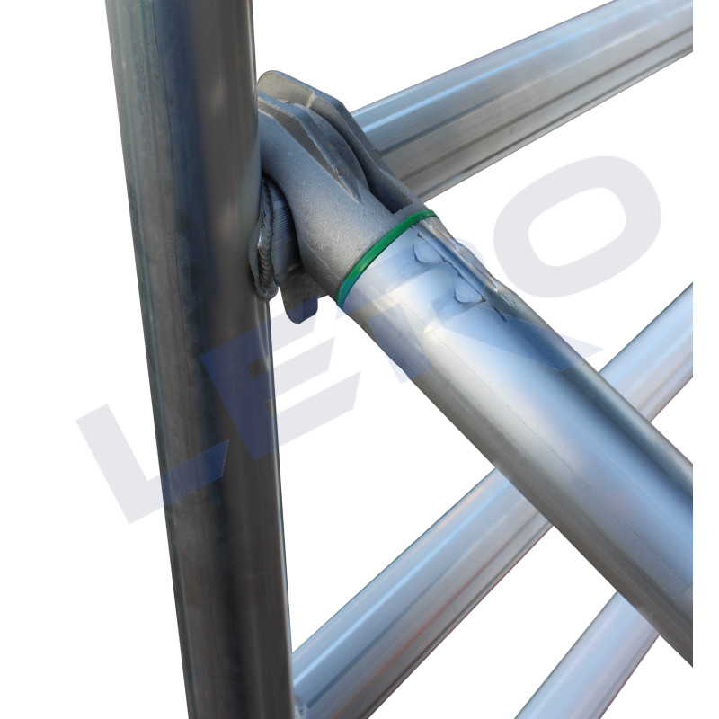 Rusztowanie jezdne Euroscaffold Basic zbudowane jest z rur aluminiowych o średnicy 50 mm i grubości ścianki 2,0 mm. Taka konstrukcja gwarantuje stabilność, wytrzymałość oraz odporność na uszkodzenia mechaniczne. Dzięki zastosowaniu lekkiego aluminium, rusztowanie jest łatwe w transportowaniu i przechowywaniu.