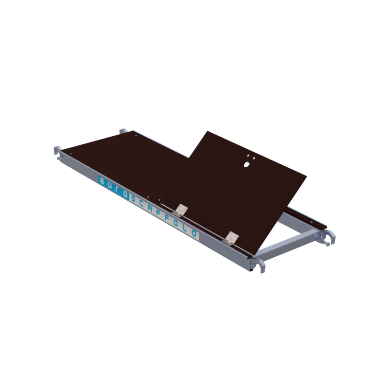 Podesty robocze rusztowania Euroscaffold Basic są wyłożone sklejką antypoślizgową, co zapewnia bezpieczeństwo podczas pracy. Każdy podest wyposażony jest w klapę umożliwiającą wygodne i bezpieczne wejście na rusztowanie, co znacznie zwiększa funkcjonalność i komfort użytkowania sprzętu.
