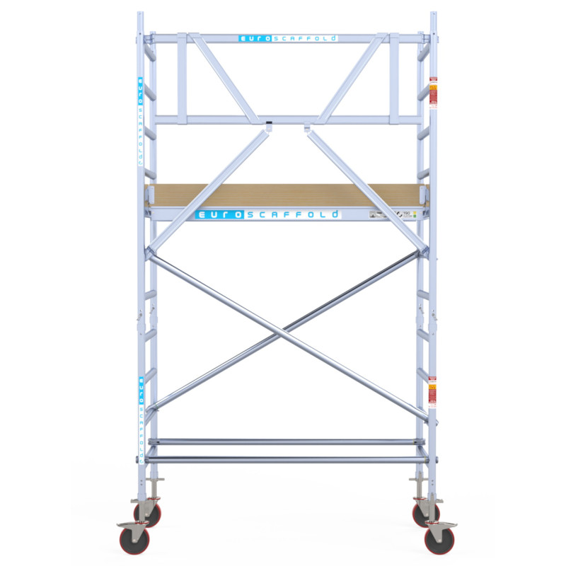 Wszystkie elementy rusztowania wykonano z najwyższej jakości aluminium, co gwarantuje lekkość, trwałość oraz odporność na korozję. To sprawia, że Euroscaffold Basic jest idealnym wyborem do długotrwałego użytkowania w wymagających warunkach pracy, zarówno wewnątrz, jak i na zewnątrz budynków.