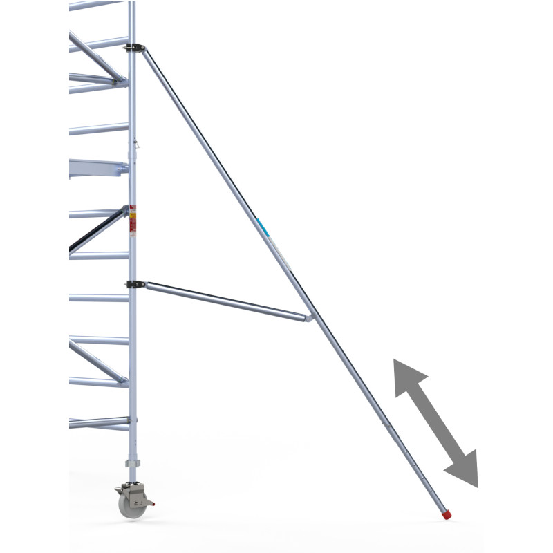 Euroscaffold Basic został wyposażony w podpory boczne, które znacznie zwiększają stabilność całej konstrukcji. Dzięki temu praca na wysokości jest bezpieczna i komfortowa, nawet w trudnych warunkach. To rozwiązanie idealnie sprawdza się w profesjonalnym użytkowaniu, gdzie stabilność ma kluczowe znaczenie.