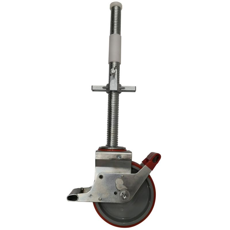 Rusztowanie wyposażone jest w masywne koła z regulacją wysokości i z hamulcem, o średnicy 200 mm