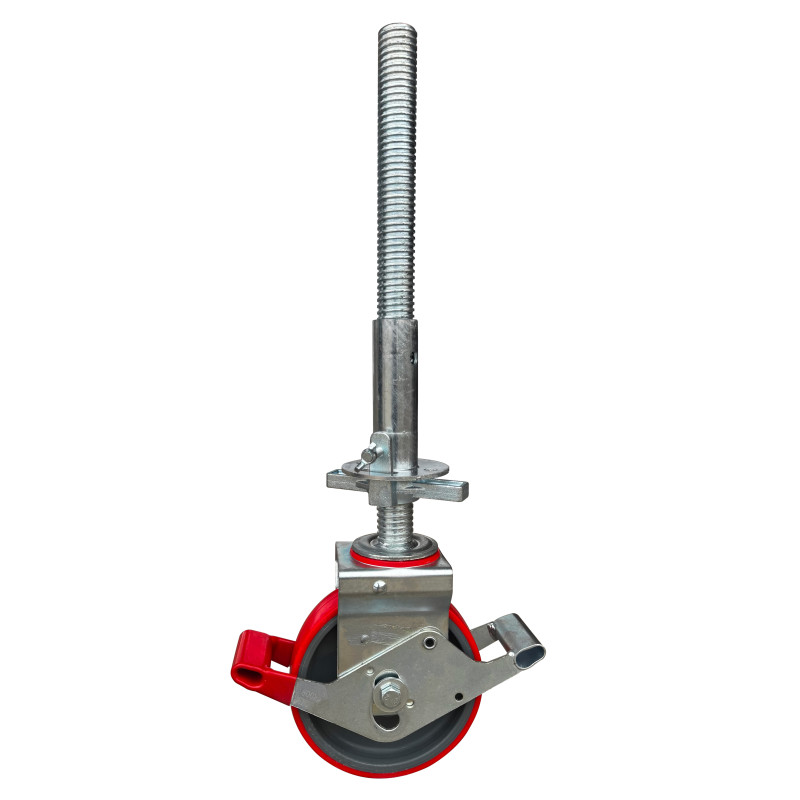 • Koła o średnicy 200 mm – wyposażone w regulację wysokości oraz niezawodne hamulce, umożliwiające łatwe przemieszczanie oraz stabilne ustawienie rusztowania nawet na nierównym podłożu.